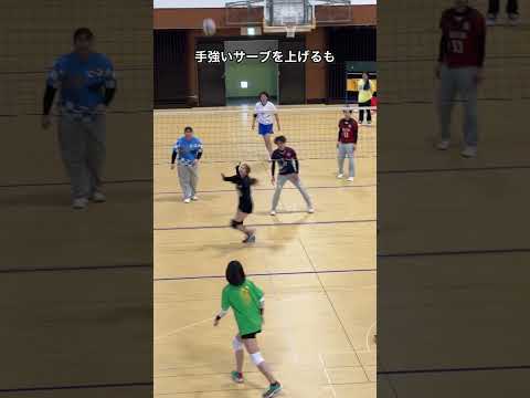 【手強いサーブを上げるも】男女混合バレーボール大会のプレー【バレーボール大会】【クルーズカップ】#shorts#バレーボール#混合バレーボール