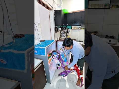 Abah buka kulkas,abah ambil sepedah di kulkas
