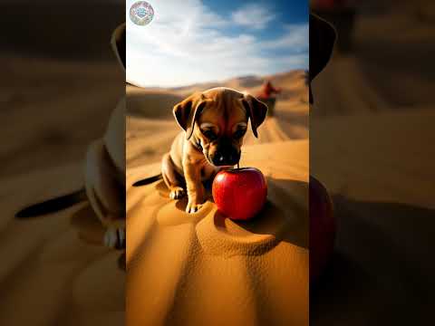 A puppy found a dried apple while wandering #ai #apple #puppy