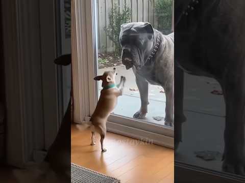الكلب الصغير يتظاهر بالقوة 😂 #قطط_المغرب #catsmaroc #babifreitas #shorts
