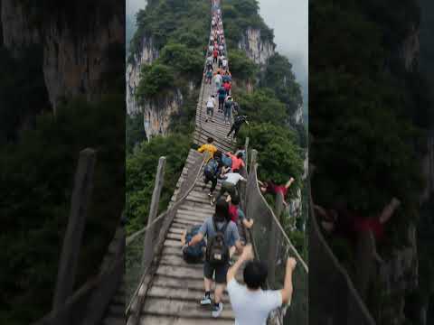 A high-altitude wooden bridge collapsed, and many tourists fell into the deep mountains.#travel