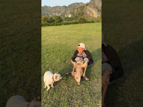 Mother Dog Saves Her Chubby Greedy Puppy from a Dangerous Meat Hunter #pets #lovedog #dogs