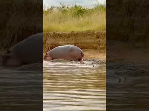 What is the hippo trying to do to the crocodile? ๐โํ๋ง๋ ์