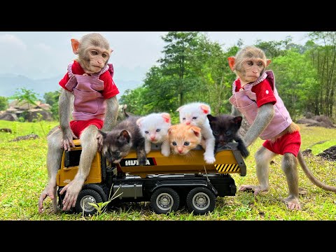 Smart monkey Bim Bim saves baby monkey Obi who is trapped and enjoys delicious watermelons