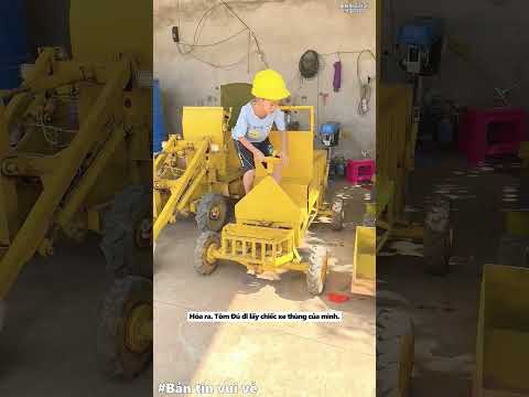 Tôm đú giúp bố kéo thùng ngô lên sân.