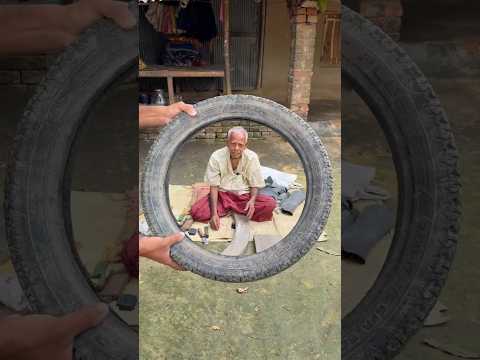 96-Year-Old Grandfather making shoes from old tires. Amazing skills