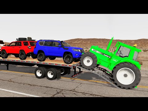 Double Flatbed Trailer Truck vs Speedbumps Train vs Cars | Tractor vs Train Beamng.Drive #0