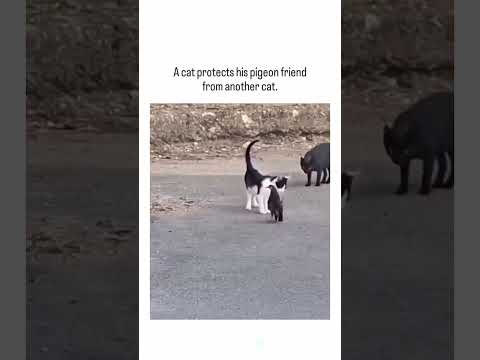 Cat is protecting his little friend
