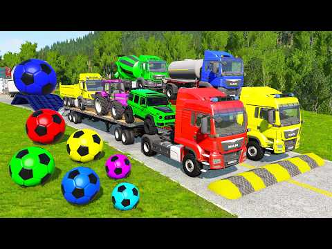 Flatbed Trailer McQueen Transportation with Truck - Speedbumps vs Cars vs Train - BeamNG.Drive #17
