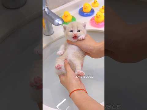 Tiny kitten vs big scary shower ππΏ