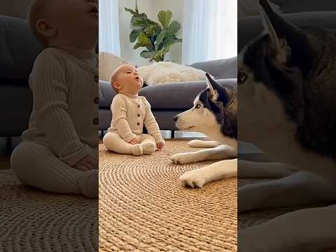 Baby Tries to Howl Like a Husky... And the Husky Answers 🥰