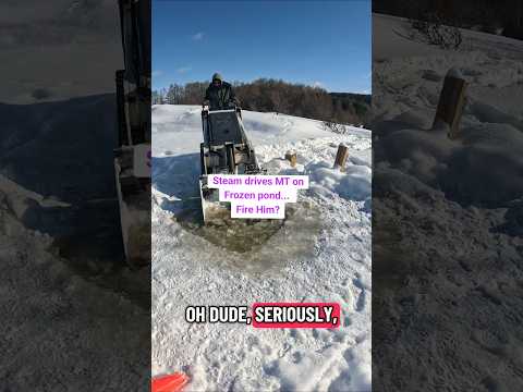 Worker almost sinks Skid Steer on frozen pond #satire #constructioncomedyclub