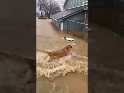 Hero Dog Bravely Rescues Tiny Kitten From Floodwaters! ๐ถโค๏ธ๐ฑ #HeroDog #AnimalRescue #Wholesome