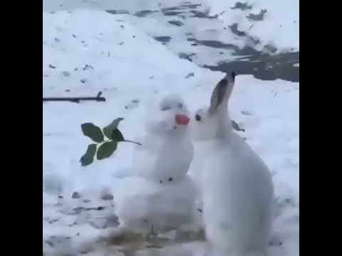 Iepurașul și omul de zăpadă, prieteni în pădure, parc, natură Creativitate bucuriile naturale iarna