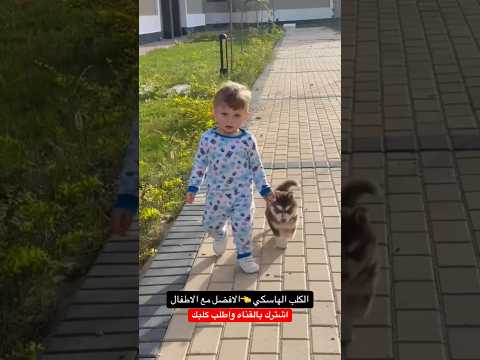 الكلب الهاسكي بيحب الاطفال