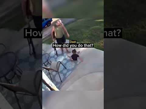 Kid Follows Dad Onto the Porch and Accidentally Does a Front Flip Down the Stairs