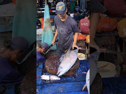 Amazing! the skill of using a sharp machete by a giant tuna cutting master #fish #tuna #viral #food