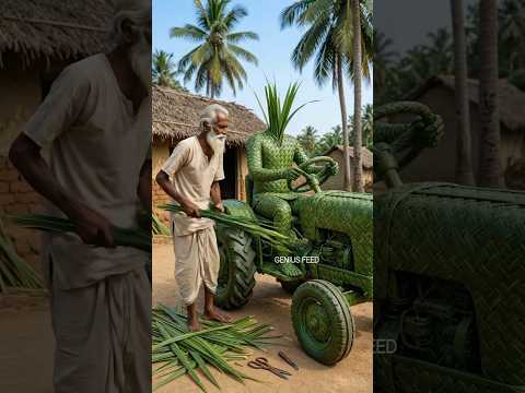 Indian Farmer sitting on Tractor | Made from palm leaves #ai #tractor #craft