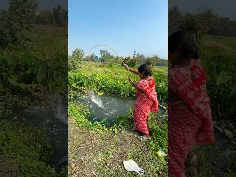 Village woman fishing in the rice field canal using hook #video #hookfishing #shorts #fishing #fish
