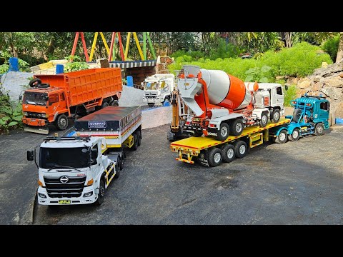 AKSI KE 76 ‼️ Pengecoran Jalan Layang Rc Truk Hino Trailer vs Tronton Angkut Pasir Penuh Putar Arah