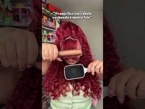 Franja lisa em cabelo cacheado? 🤔 #cabelovermelho #cabelocacheado #cabelo