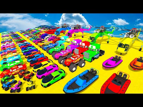 🚗GTA V Spiderman McQueen Cars 2 Vs Mack Truck Mega Ramp - Superheroes car Racing