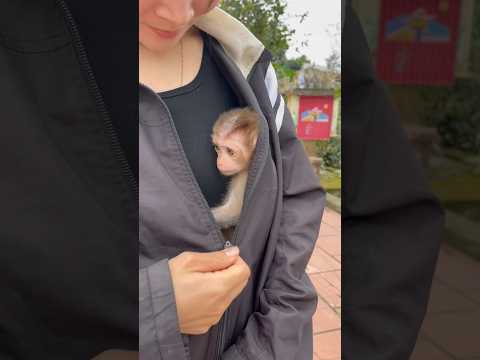 When sleepy, both baby monkeys wanted to snuggle under their mother's clothes to sleep soundly.😍