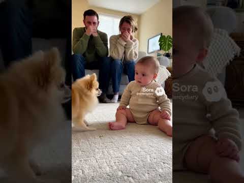 Baby is totally confused about what the doggie wants to say