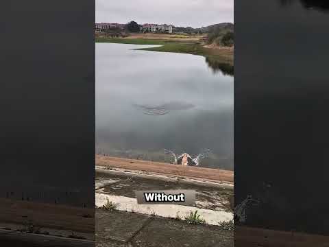 without any hesitation puppy jump into water #lake