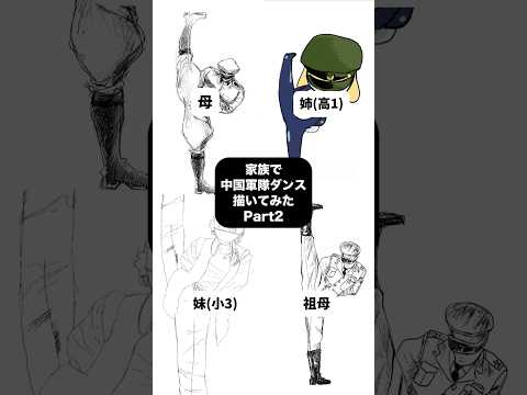 家族で中国軍隊ダンス描いてみたPart2 #shorts #イラストメイキング #お絵描き #中国ダンス