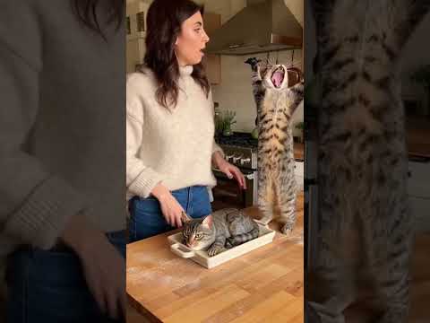 Real Cat Loses It Seeing a Cake Cut That Looks Like Her ๐น๐ฐ #shorts #cat #funnycats #catcake