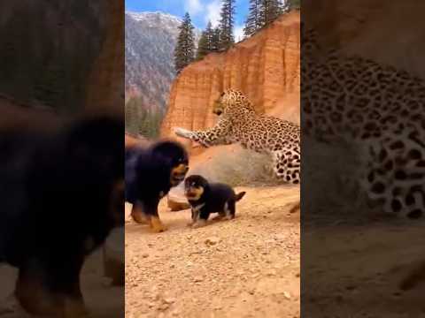 A Tibetan Mastiff and its puppy are attacked by a predator.