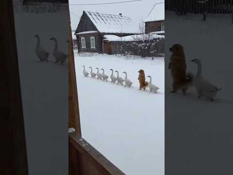 Я не ПОВЕРИЛ глазам… Гуси идут строем, и собака тоже!