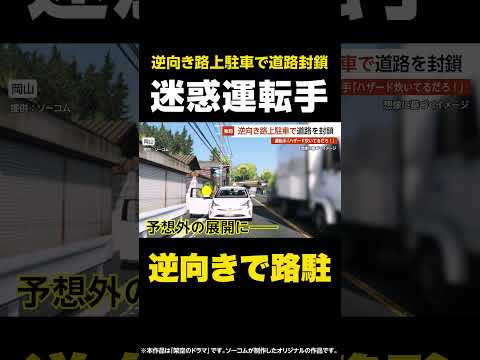 【逆向きで路駐】逆向き路上駐車で道路を封鎖…迷惑運転手「ハザード炊いてるだろコリャ!」 岡山 #shorts