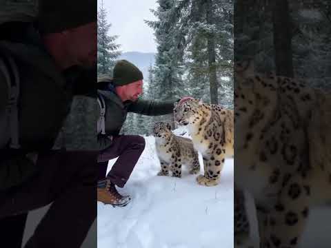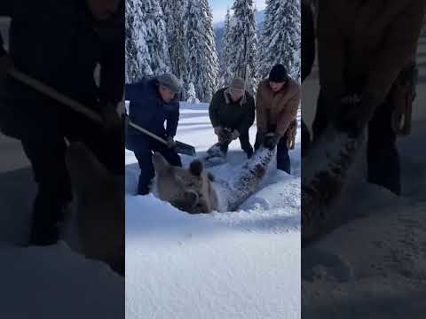 Man Saves Snow Leopard and Her Cub from Fallen Tree | AI Cinematic Wildlife Rescue in Snowy Forest