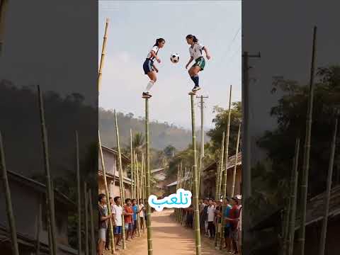 يا إلهي! فتيات يلعبن كرة القدم على الخيزران ⚽🎋