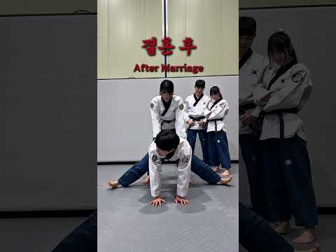 결혼 전/후👩🏻❤️👨🏻다리 찢을 때 커플, 부부의 차이⁉️ #태권크리 #taekwoncre #태권도진흥재단 #결혼전 #결혼후
