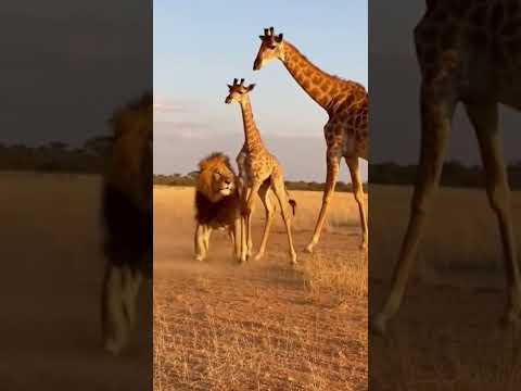 🦒 KICK! Giraffe Stuns Lion! 🦶 【痛恨】キリンの蹴りがライオンに直撃!