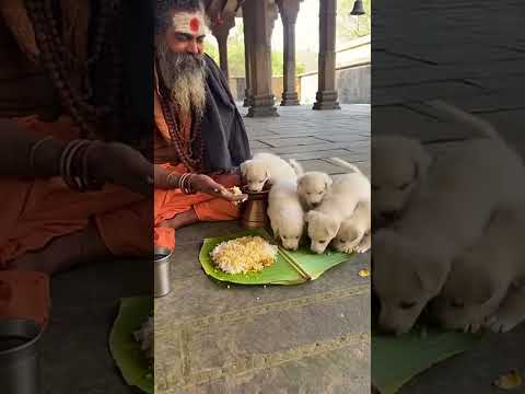 Baba Shares Food With Hungry Puppies ❤️🐶 #Puppies #baba #DogLove #AnimalLove #Kindness #sadhu