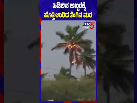 Thunderstorm Causes Tree Fire In Bagepalli ಸಿಡಿಲಿನ ಅಬ್ಬರಕ್ಕೆ ಹೊತ್ತಿ ಉರಿದ ತೆಂಗಿನ ಮರ