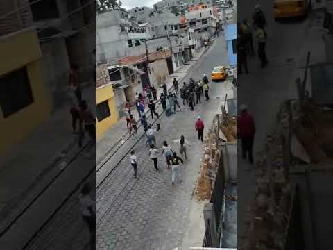ECUADOR, Puertoviejo - Violencia de la policia vs Indigenas, dispara un carro, guerra de los narcos