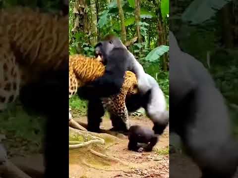 Leopard Tries to Grab Baby Gorilla but Faces Furious Mother! #shorts