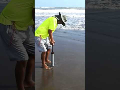 Un tubo, paciencia y precisión… mira lo que logra sacar de la playa