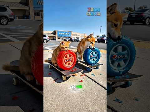 mèo con và chú chó ăn kẹo dẻo cùng nhau. #cat #shorts #vairalvideo