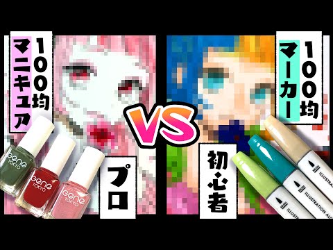 【100均マニキュアVS100均イラストマーカー】描き比べお絵描き対決!【プロ絵師VS初心者/ダイソー/Seria】Nail polish VS color pen.
